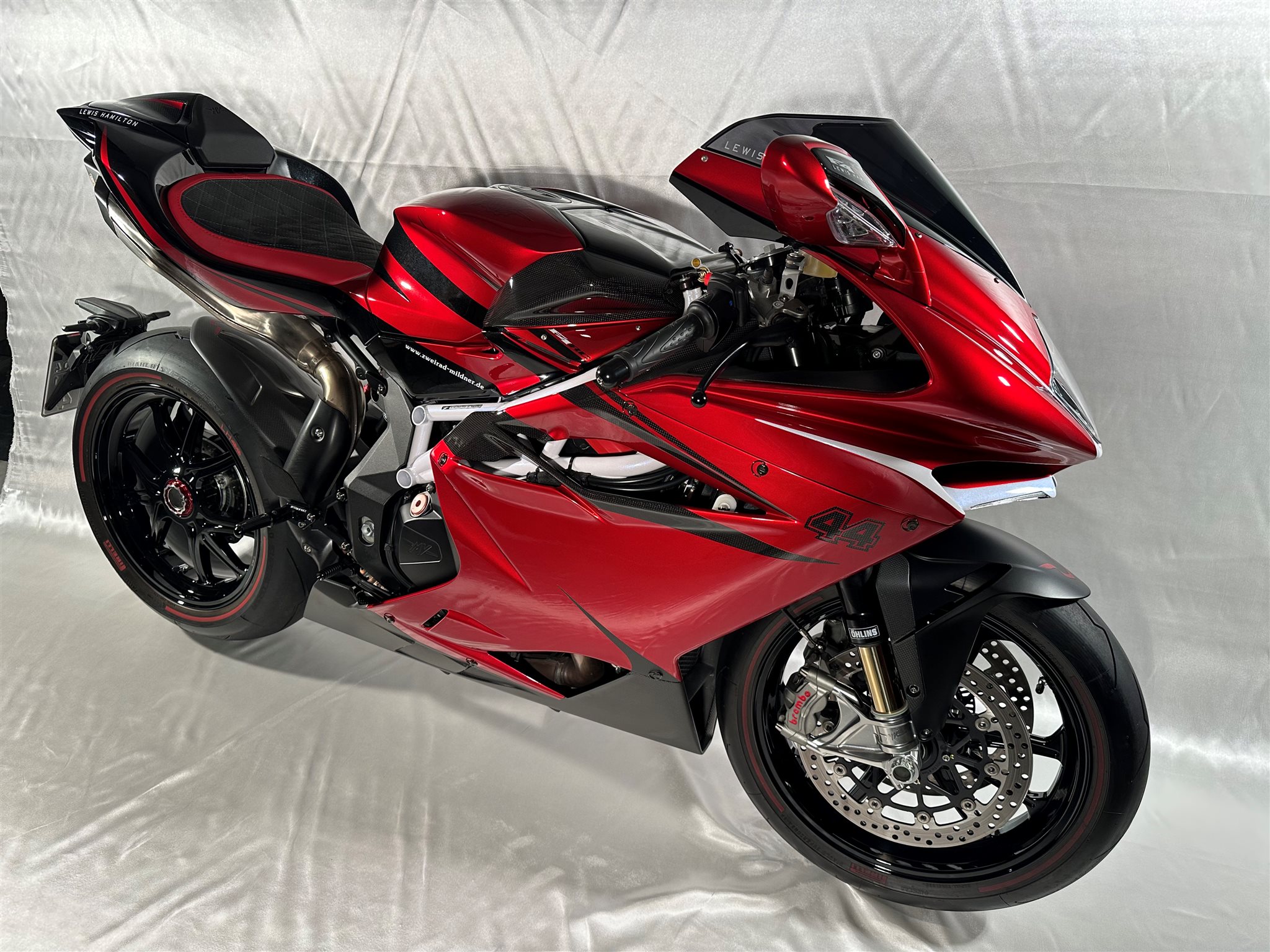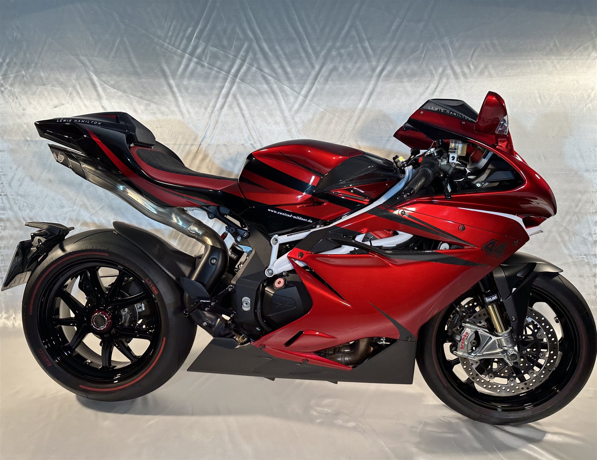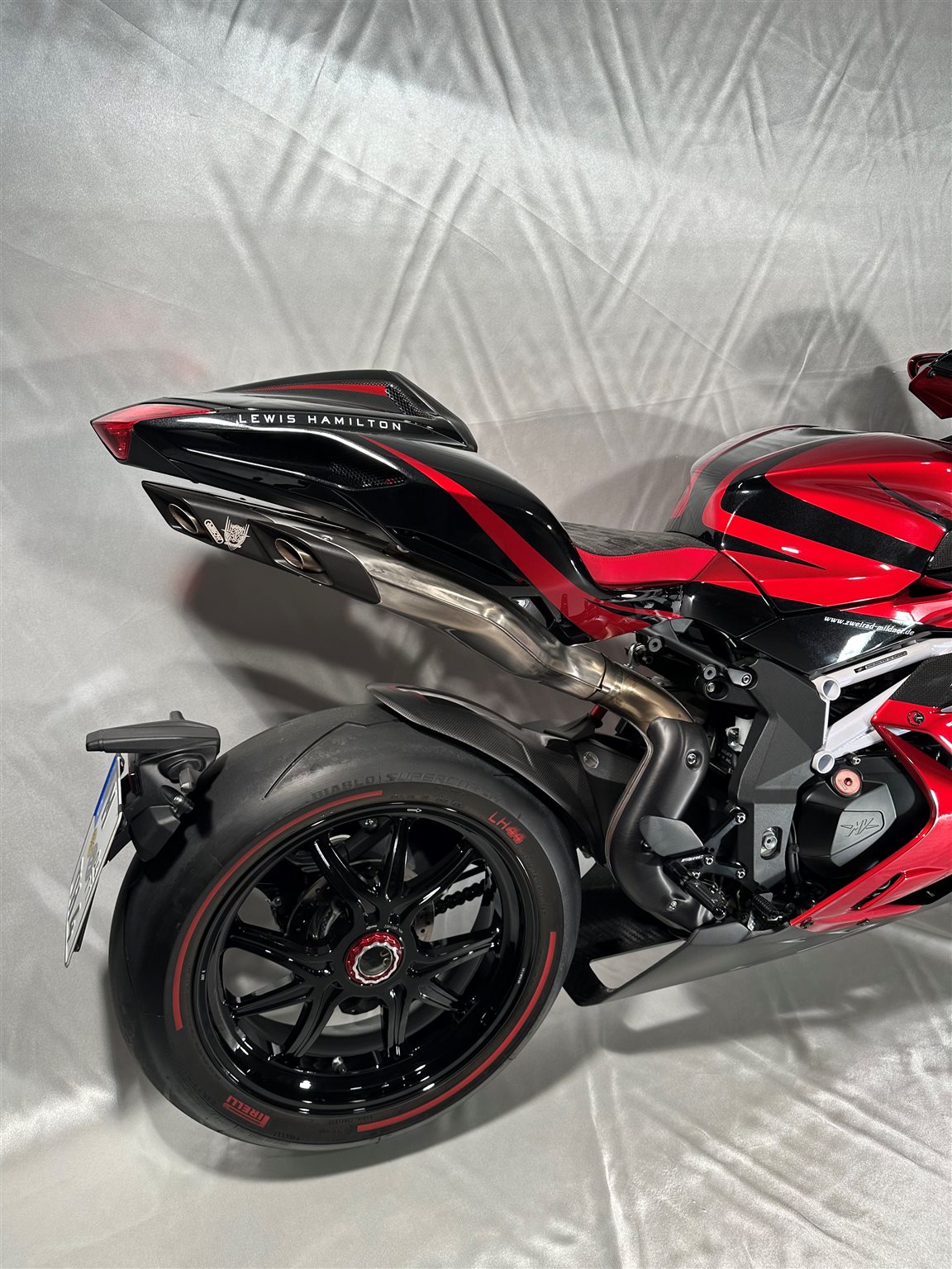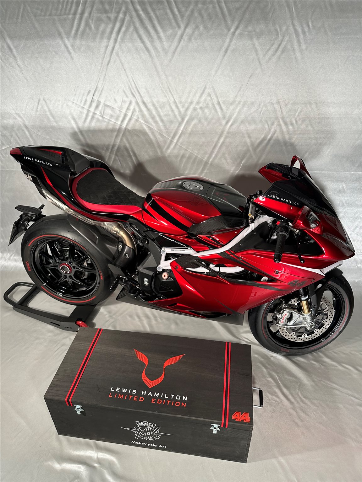 Die MV Agusta F4 LH44 ist das Ergebnis einer außergewöhnlichen Zusammenarbeit zwischen MV Agusta und Formel-1-Superstar Lewis Hamilton limitiert auf nur 44 Exemplare weltweit, in Anlehnung an seine ikonische Startnummer.