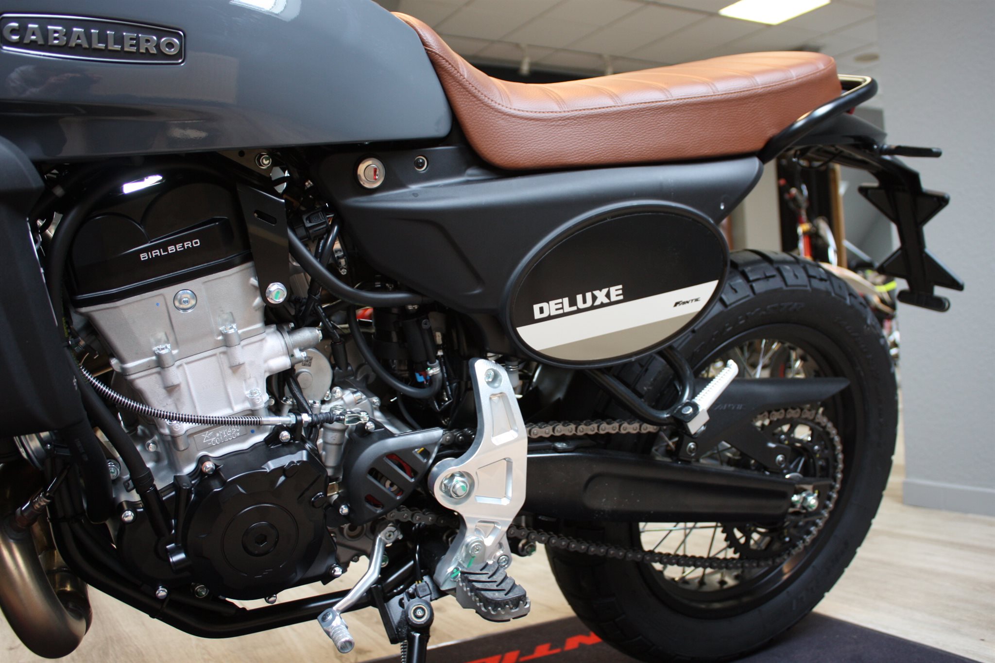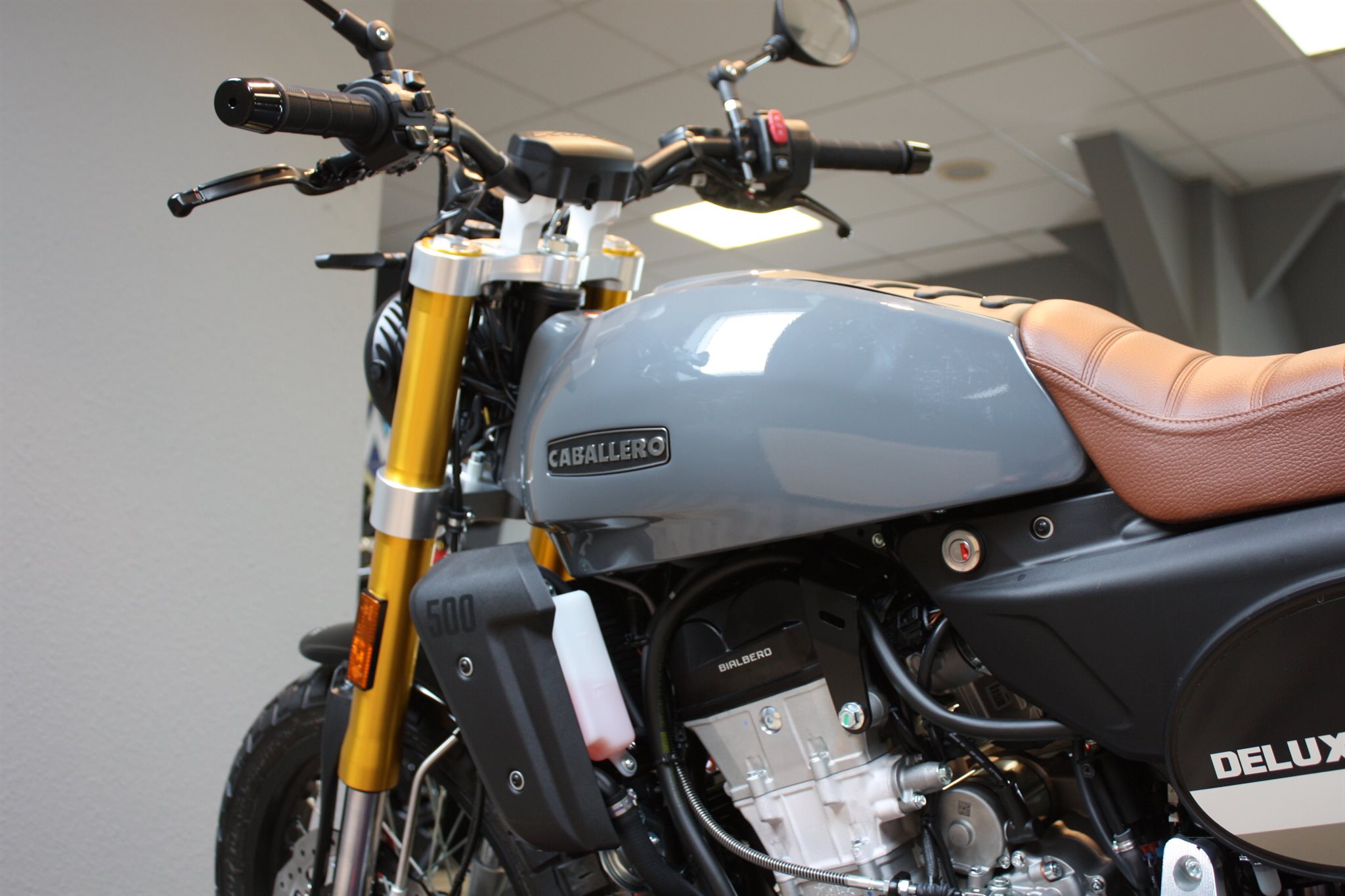 Die Caballero Deluxe ist ein elegantes Motorrad, das Scrambler- und Offroad-Stil perfekt mit einem coolen, urbanen Design vereint.